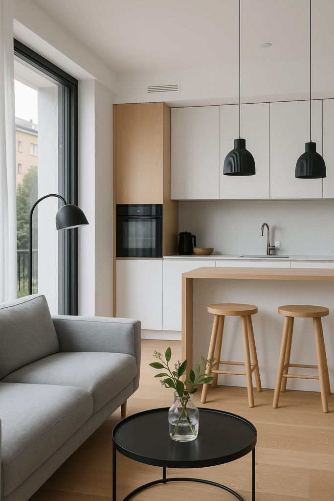 Diseño funcional, iluminación y almacenamiento bien pensados para la estancia más vivida de la casa.